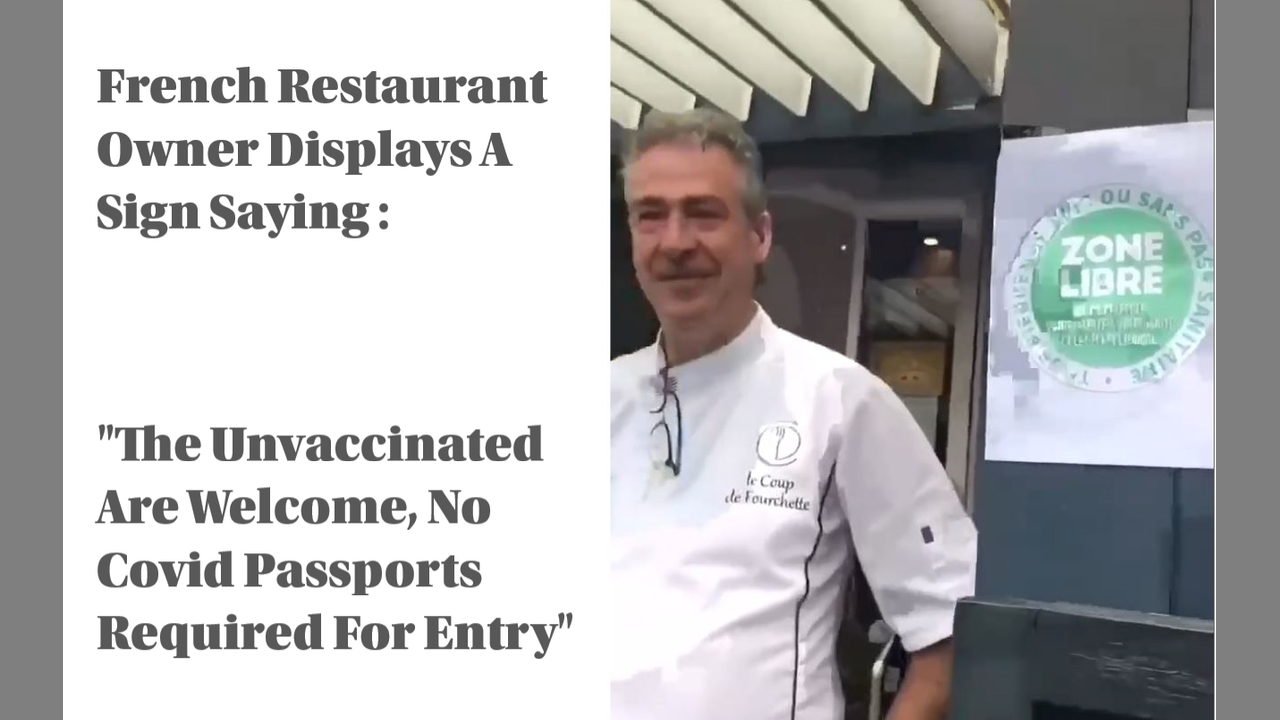 French Restaurant Owner Displays A Sign Saying The Unvaccinated Are Welcome, No Covid Passports Required For Entry