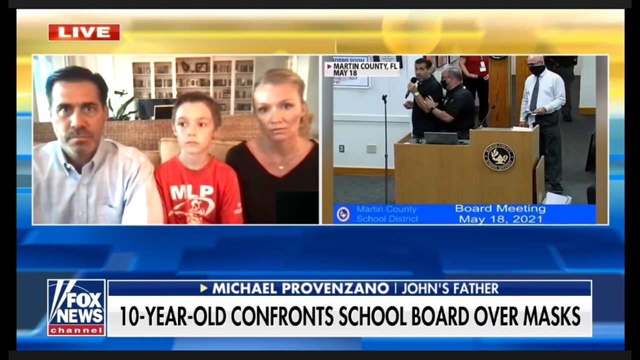 John Provenzano, a student in the Martin County FL School District, and his parents argue the school board is 'out of touch' as they try to 'silence and remove people who don't agree with them.' The child's father was forcibly removed from the podium for expressing his views and told he was trespassing at the school board meeting. He may be banned from future meetings on account of his views.