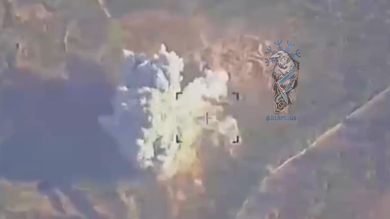 An airstrike by the Russian Aerospace Forces on the weapons depot of the Ansar At-Tawhid group in Jabal al-Zawiya, Idlib province, Syria