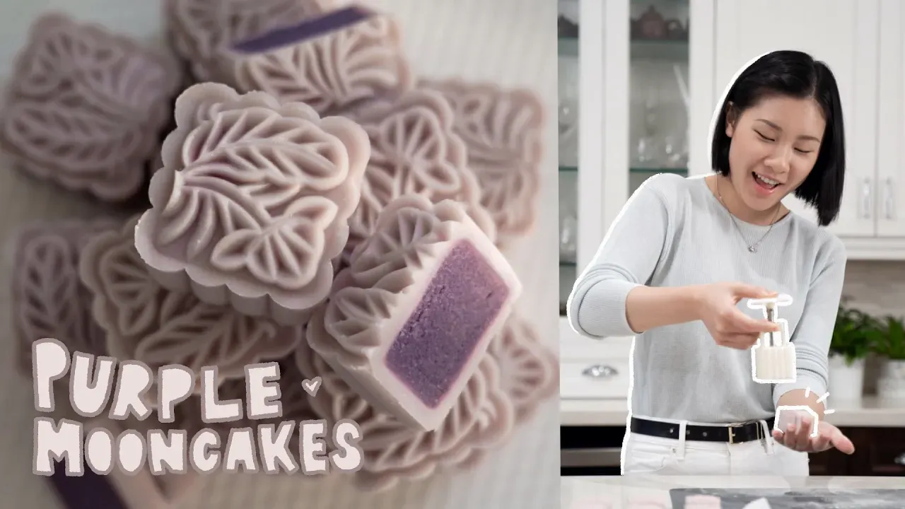 Purple Snowy Mooncakes! (Sweet Potato and Coconut Filling)│紫薯椰奶冰皮月饼 (中英文字幕)