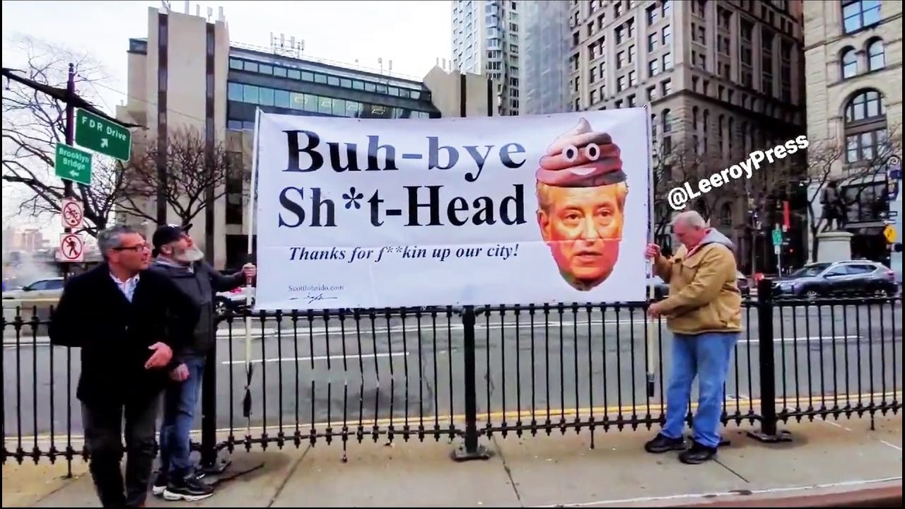 NYC Patriotos came to say goodbye to Bill de Blasio on his last day in office...🤣🤣🤣