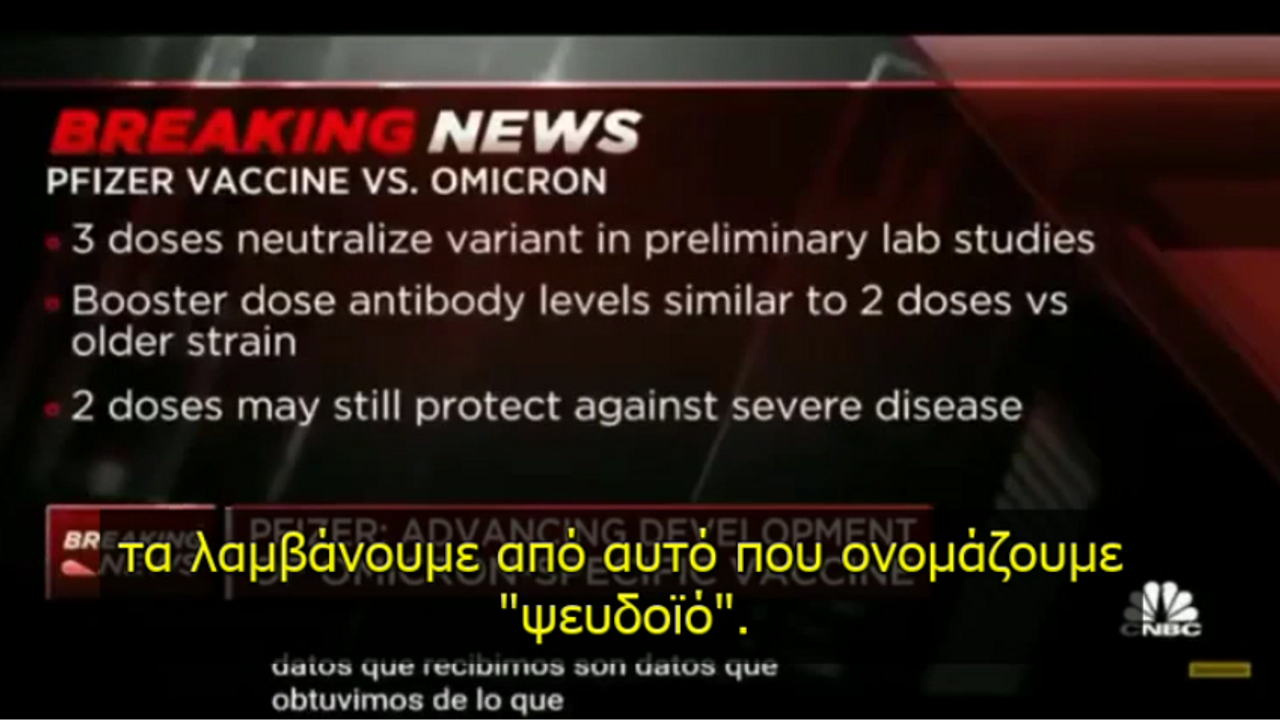 Ο Albert Bourla απαντάει σε ερώτηση σχετικά με νέο εμβόλιο για την παραλλαγή Όμικρον.