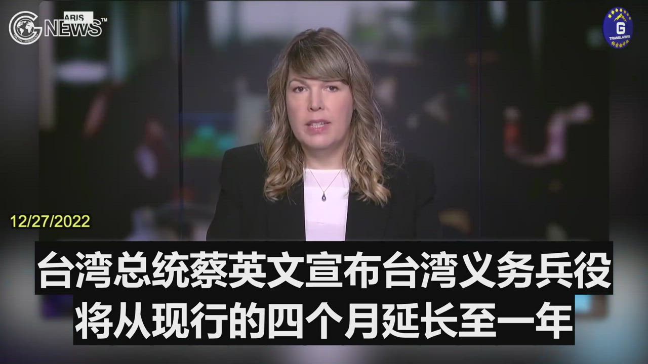 Summary:12/27/2022 Taiwan's President Tsai Ing-wen has announced that the island's mandatory military service will be extended from four months to a year starting from 2024.