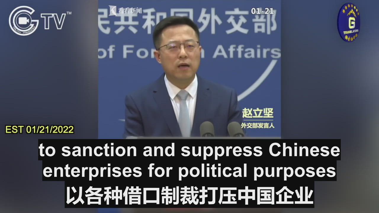 01/21/2022 Chinese Foreign Ministry spokesman Zhao Lijian refuses to acknowledge that China has violated “missile technology proliferation,” instead calling the U.S. sanctions against 3 Chinese military companies a bullying act.