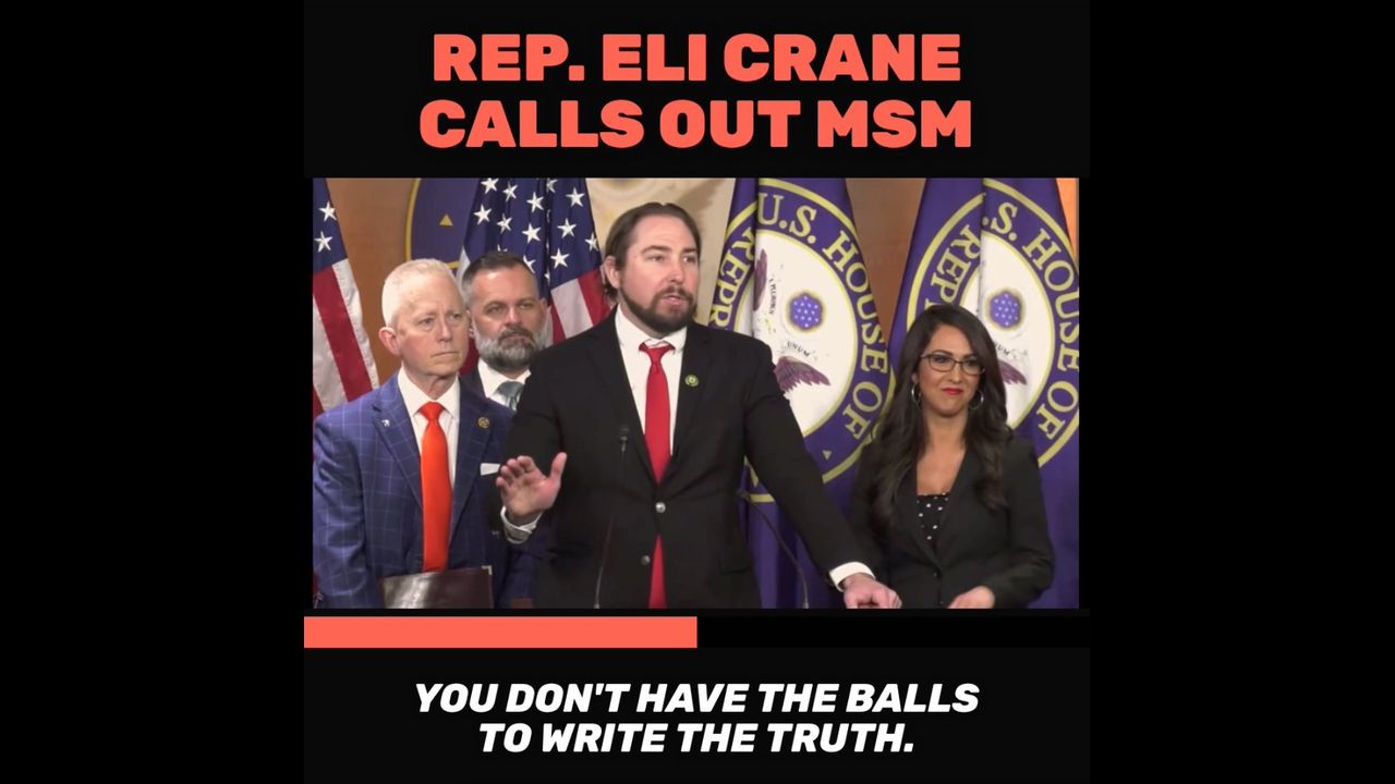 At a House Republican press briefing to promote a resolution declaring former President Trump did not engage in an insurrection yesterday, Rep. Eli Crane (R-AZ) slammed attempts to remove the ex-President from the ballot and insulted reporters' for their coverage of January 6.