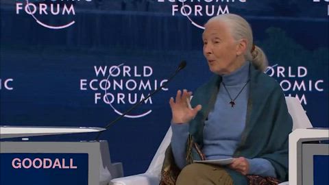 Speaking on a World Economic Forum panel, UN "Messenger of Peace", Jane Goodall, advocates reducing the global population down to 450 million—a 95% reduction from today's population: