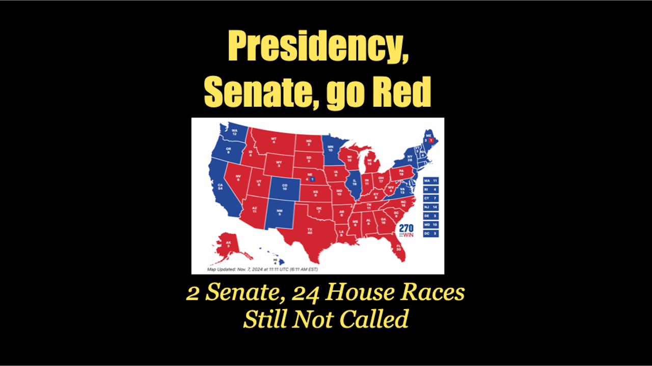 November 7, 2024 - Donald J. Trump will be our 47th President. He won the election with 312 electoral college votes, won all seven swing states, won the popular vote by five million, and helped Republicans take control of the Senate and hopefully, the House. Weird numbers of voters call attention to 2020 race, Putin and Hamas ready for peace with new US President. Victory!