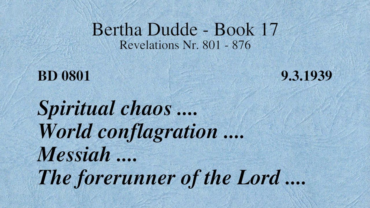 BD 0801 - SPIRITUAL CHAOS .... WORLD CONFLAGRATION .... MESSIAH .... THE FORERUNNER OF THE LORD ....