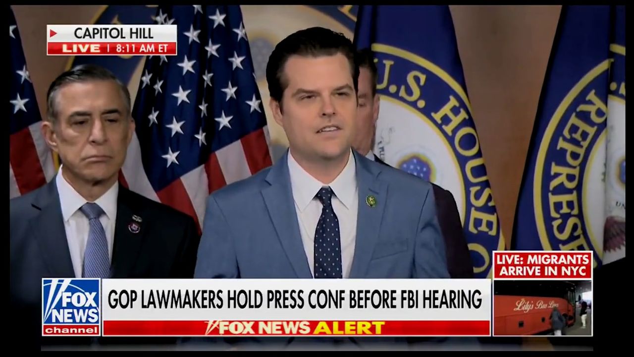 BREAKING: Matt Gaetz forces reporters to sit through newly unveiled footage of FBI whistleblower depositions EXPOSING Regime’s clear weaponization against political enemies.