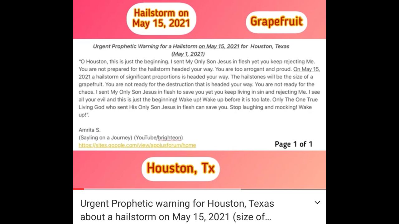 Prophetic warning for Houston, Texas about a Hailstorm coming on May 15, 2021
