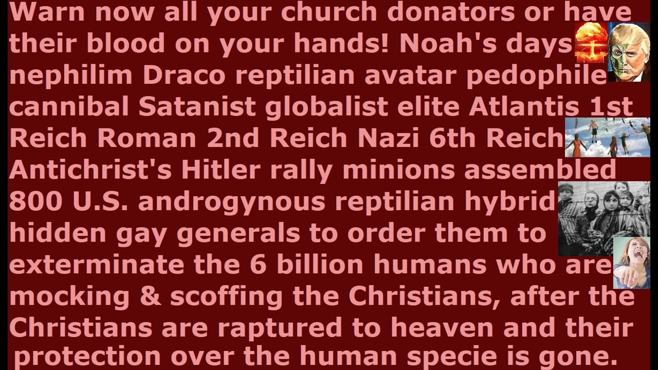 *** Intelligence news update from the Human Homo-Sapiens Race Survival Resistance (HRSR) and Republic Rebel Alliance battlefront (October 2025). Looking at Donald Trump’s doppleganger’s speech, it seems the Nazi Satanist faction will be going after their Communist Satanist faction rivals with their cybernetic hybrids & androids Nazi 6th Reich U.S. military and waging a war against the American populace, too. Their entire speech was about the enemies within or domestic rivals, just like they killed their rival brown shirts back in Nazi Germany when they were in their former lifetimes’ many reptilian-human hybrid Nazi party avatar bodies. Satan Lucifer’s fallen angel vampire devil or Draco reptilian chimera fake alien incarnate avatar pedophile cannibal Satanist globalist elite demon spirit that was using Donald Trump’s doppleganger’s avatar body was telling all the communist Zionist faction and Sabbatean Frankist Nazi faction Draco reptilian chimera fake alien incarnate avatar pedophile cannibal Satanist globalist elite and reptilian hybrid military generals & commanders at his October 1st, 2025 Hitler’s rally speech, “I know that you have created attachments to these human specie populace of the United States of America, but we are at war with God’s human specie, so after the rapture of the real Christians up to heaven, I want you to kill and destroy and slaughter and massacre and genocide exterminate all the human specie Americans just like you did in Nazi Germany. If you do not like what we are ordering you, then you can quit and leave now. There will be no public woke transvestite promotion in the military, but all androgynous Draco reptilian chimera fake alien incarnate avatar pedophile cannibal Satanist “above colonel & general & admiral level” military leaders & military commanders’ lesbian gay bisexual transvestite pedophile bestiality zoophile dendrophile gerontophile necrophile demonophile Satanist ritual child sex magick orgies will be confined to only hidden Bohemian Grove & Satanist secret societies & Bilderberg satanic druid council meetings & conferences & military generals’ Nazi rallies Satanist reptilian gay orgy rituals, and there will be no public promotion of LGBTPBZDGNND+ in the military from now on. The real Christians are protecting the 6 billion heathen humans, who are mocking & scoffing the real Christians about the rapture, but once the real Christians are raptured up to heaven, these mocking & scoffing 6 billion humans and millions of fake Christians will no longer have the real Christians’ protection, so our Nazi reptilian hybrid holocaust gas chamber orders to all military generals are to exterminate every human specie man, woman, and child without mercy. We are at war, so have the warrior’s ethos. Keep your androgynous reptilian transgender cross-dressing & gay sex hidden from the public. Use only cloned hybrid human-looking male bodies, and do not use hermaphrodite cloned hybrid bodies with both male & female genitals to rape & sodomize both little human boys & girls. Soon you will be feasting on the bodies of millions of little human children’s meat and adrenochrome blood. Eat them alive, just as in all previous war crimes we created, and all human laboratory Mengele experiments we conducted, and every war we caused among the humans to feed our parasite bosses fallen angels their human soul energy of hatred & fear & sorrow & pain & despair so that they can survive since they are cut off from God’s life source energy, so that we can receive wealthy powerful high-positions in the military & police & government & churches & schools & seminaries & media & corporations & courts & space fleets. You have your orders. Either obey our boss the Antichrist or be removed”.