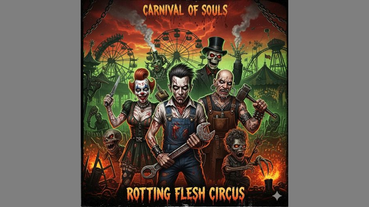[Verse 1] (male vocals, whispered, menacing) Lost souls on a highway to hell, a vintage van breaks down, A roadside attraction, a killer clown in a small-town, Dr. Satan's legend, a gruesome tale they seek, The Firefly clan, the horrors begin to shriek. [Chorus] (heavy metal, industrial rock, grinding guitars) House of 1000 Corpses, a grindhouse nightmare scene, Screaming guitars and a bassline so obscene, A carnival of horrors, psychotic family glee, No one gets out alive, can't you see? [Bridge] (creepy carnival music box, distorted female vocals, maniacal laughter) Baby wants to play a game, Otis wants to carve and slay, Captain Spaulding cackles as the victims lose their way, Psychedelic torture, a bloody, chaotic trip, This is where the innocent will finally slip. [Outro] (ambient synth drone, a single gunshot, fading laughter) A black comedy of death, a gruesome, bloody show, The Firefly legend grows.