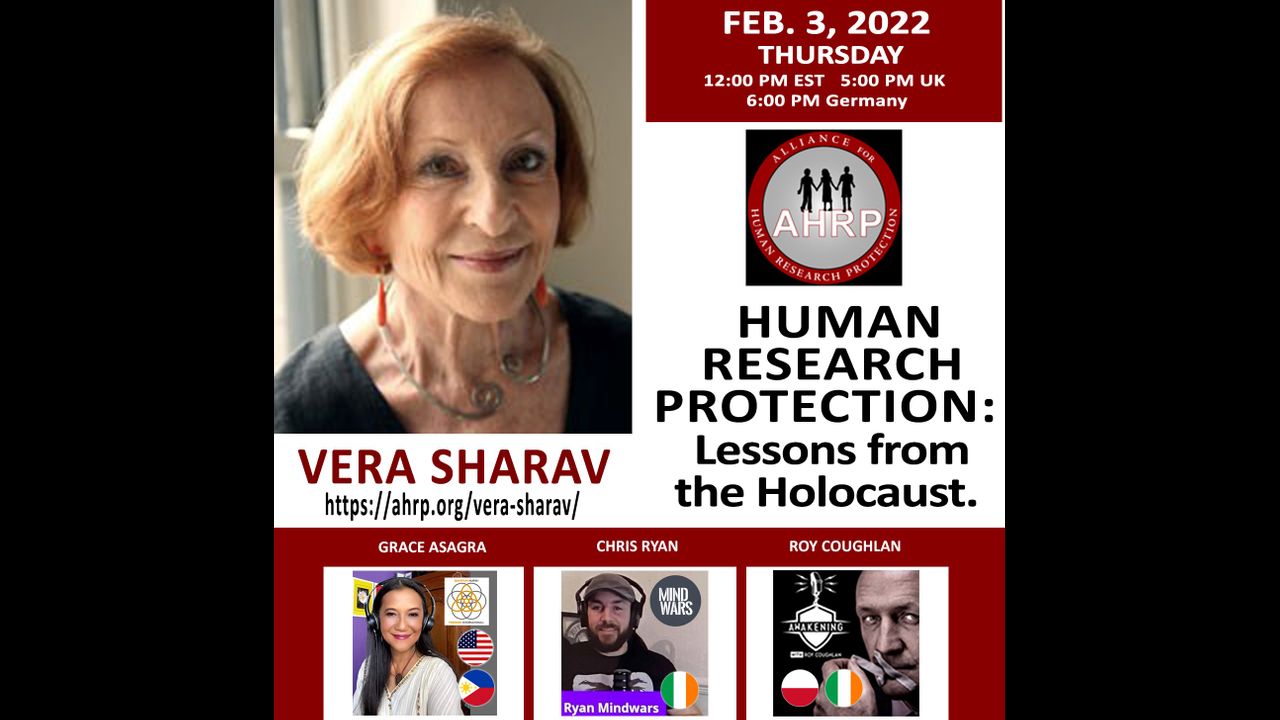 Mrs. Vera Sharav, a child survivor of the Holocaust, is a public advocate for ethical medical research. She is the founder and president of the Alliance for Human Research Protection (AHRP, www.ahrp.org) an information resource and watchdog organization whose goal is to unlock the walls of secrecy that undermine patient safety and scientific integrity.