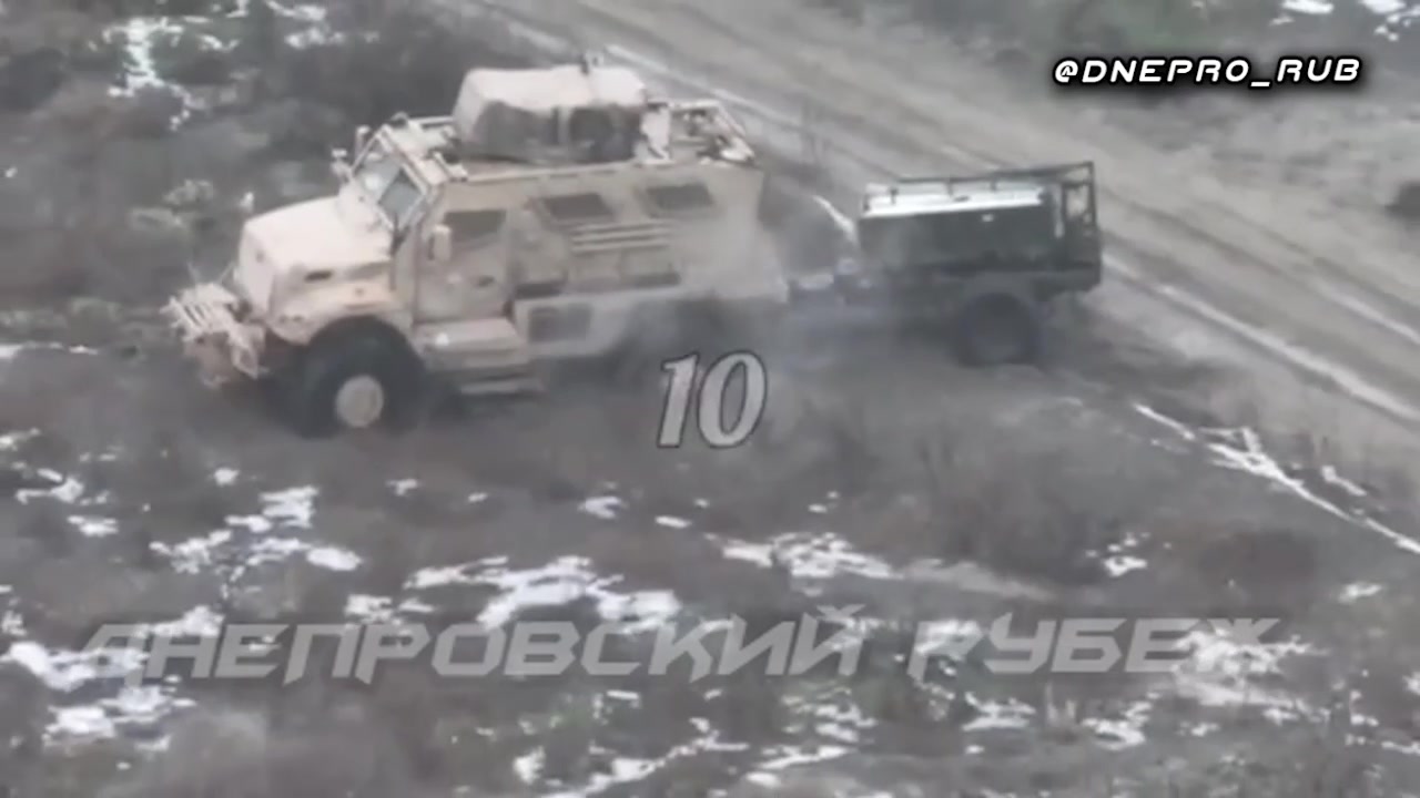 Destruction of the American International MaxxPro armored vehicle with the M58 MICLIC remote mine clearance system in the Kherson direction