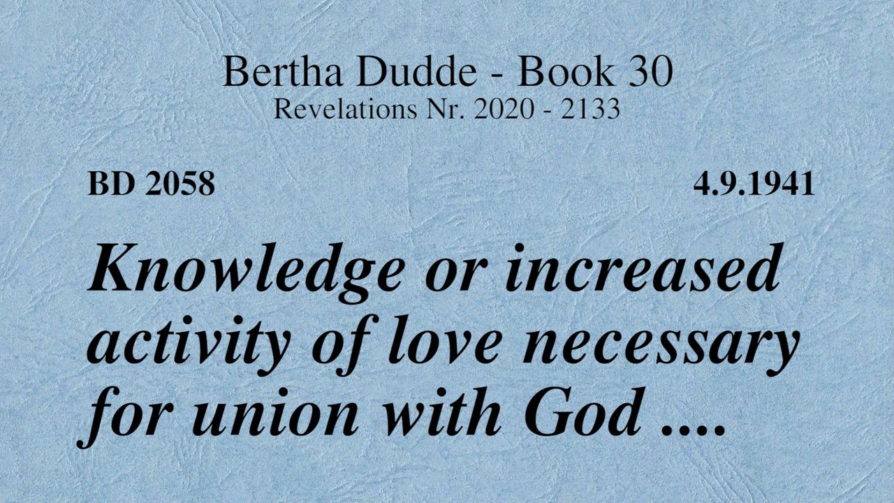 With these words the revelations of God to Bertha Dudde began on June 15, 1937, which found the conclusion on August 17, 1965 with the manifestation 9030 as a seal.