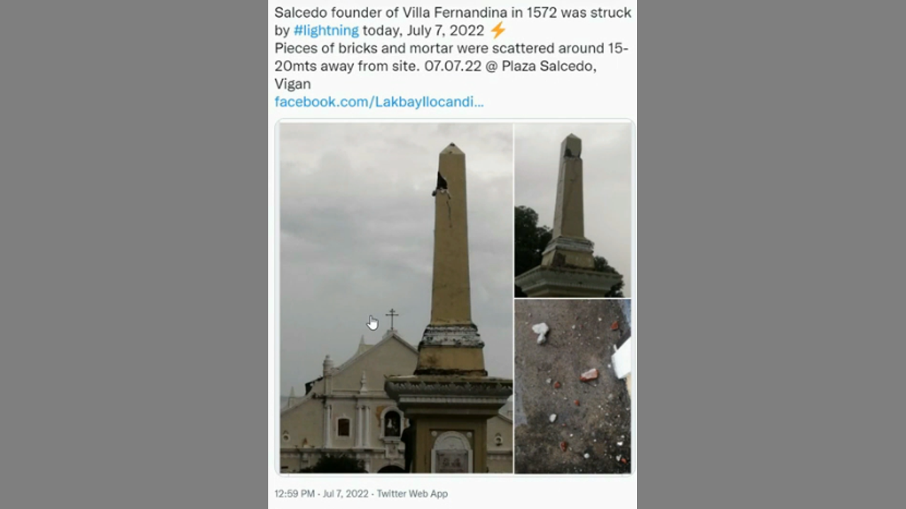:16 Obelisk struck by lightning in Vigan City, Philippines