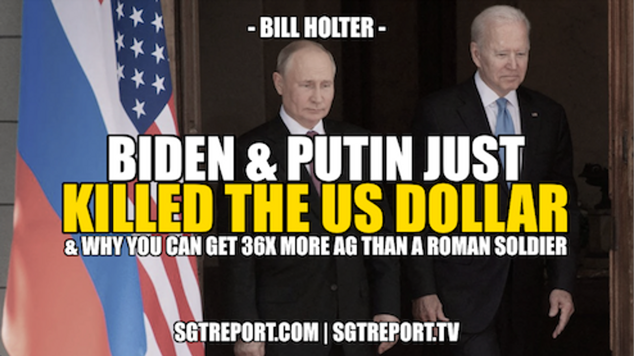 Bill Holter joins me to discuss what we believe to be the final nail in the US Dollar's coffin - and it's Joe Biden's fault. Putin has called Biden's bluff, and the death of the Dollar is now virtually guaranteed. Also, I explain how due to the paper manipulation of the silver market, YOUR labor is worth at least 36 TIMES more than a Roman soldier's when priced in $25 silver.