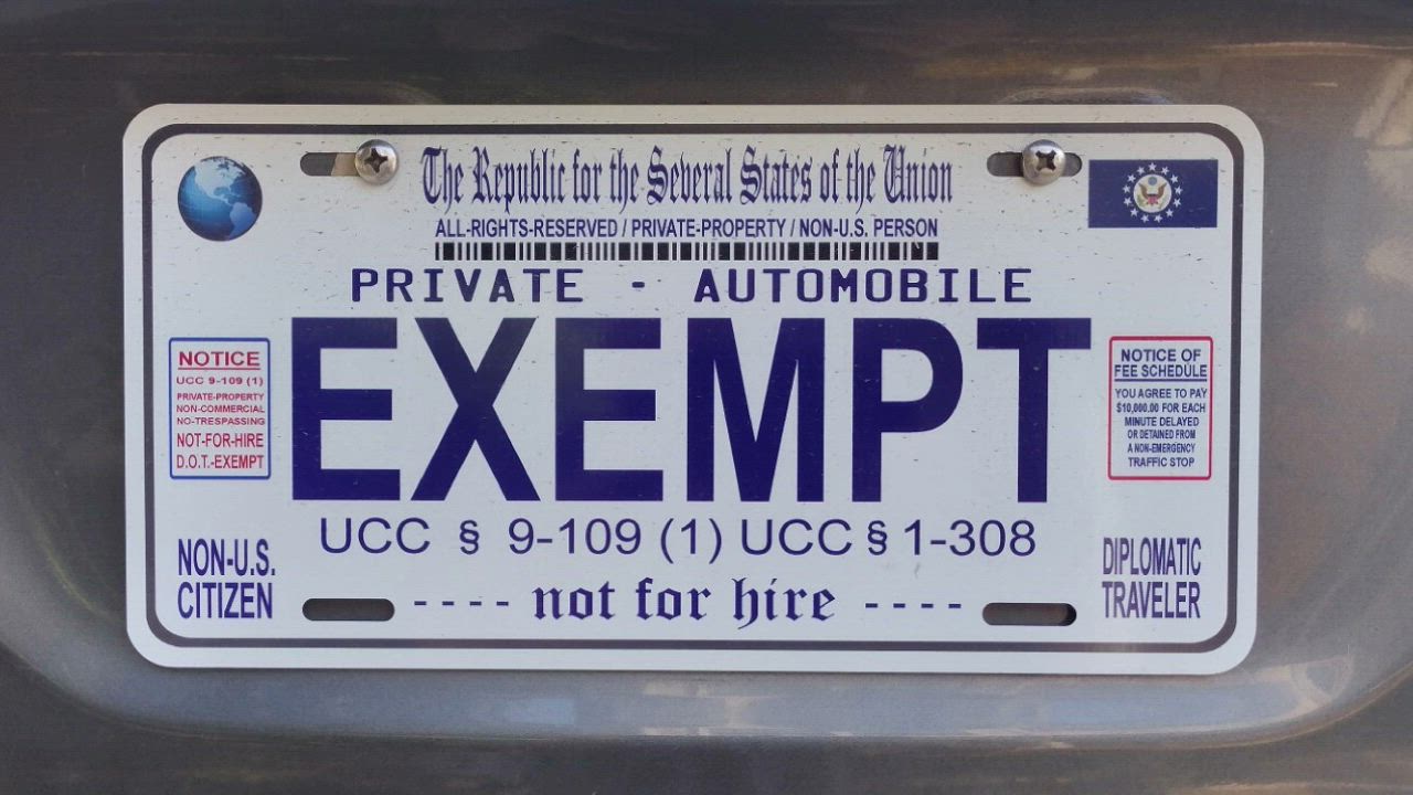 The LICENSE plate shows an "EXEMPT" vehicle license plate attached to a private automobile.