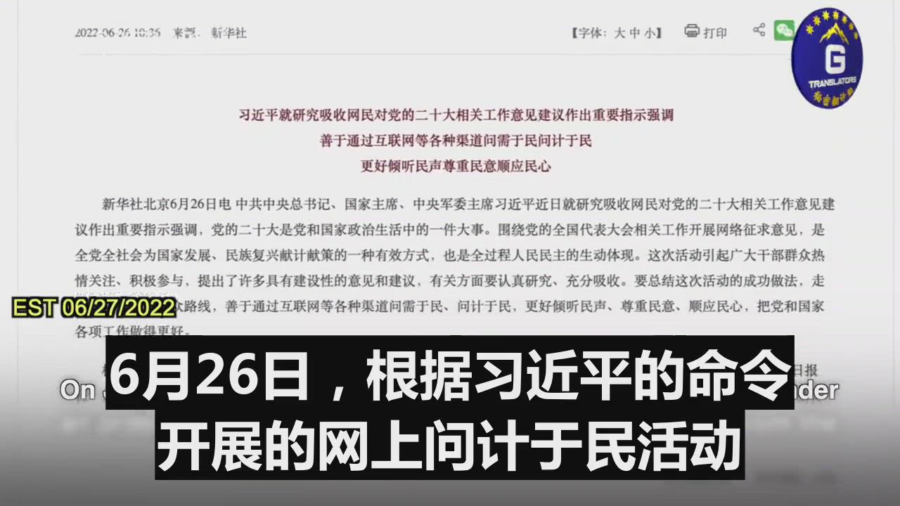 06/27/2022 Spotlight on China: The CCP carried out the online consultation activities under an order from Xi Jinping, and received millions of opinions from the people. However, many netizens are well aware of the CCPs lies, they know the CCP would ignore it.