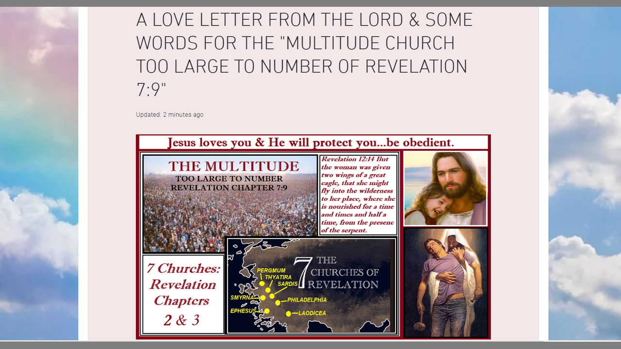 A LOVE LETTER FROM THE LORD & SOME WORDS FOR THE "MULTITUDE CHURCH TOO LARGE TO NUMBER OF REVELATION 7:9"