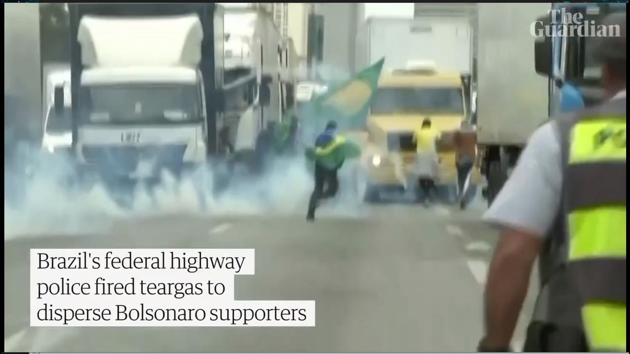 Police clashed with demonstrators, firing teargas to break up hundreds of protests, including one blockade limiting access to São Paulo's international airport. Bolsonaro lost a tightly fought ballot to Luiz Inácio Lula da Silva but has yet to concede defeat