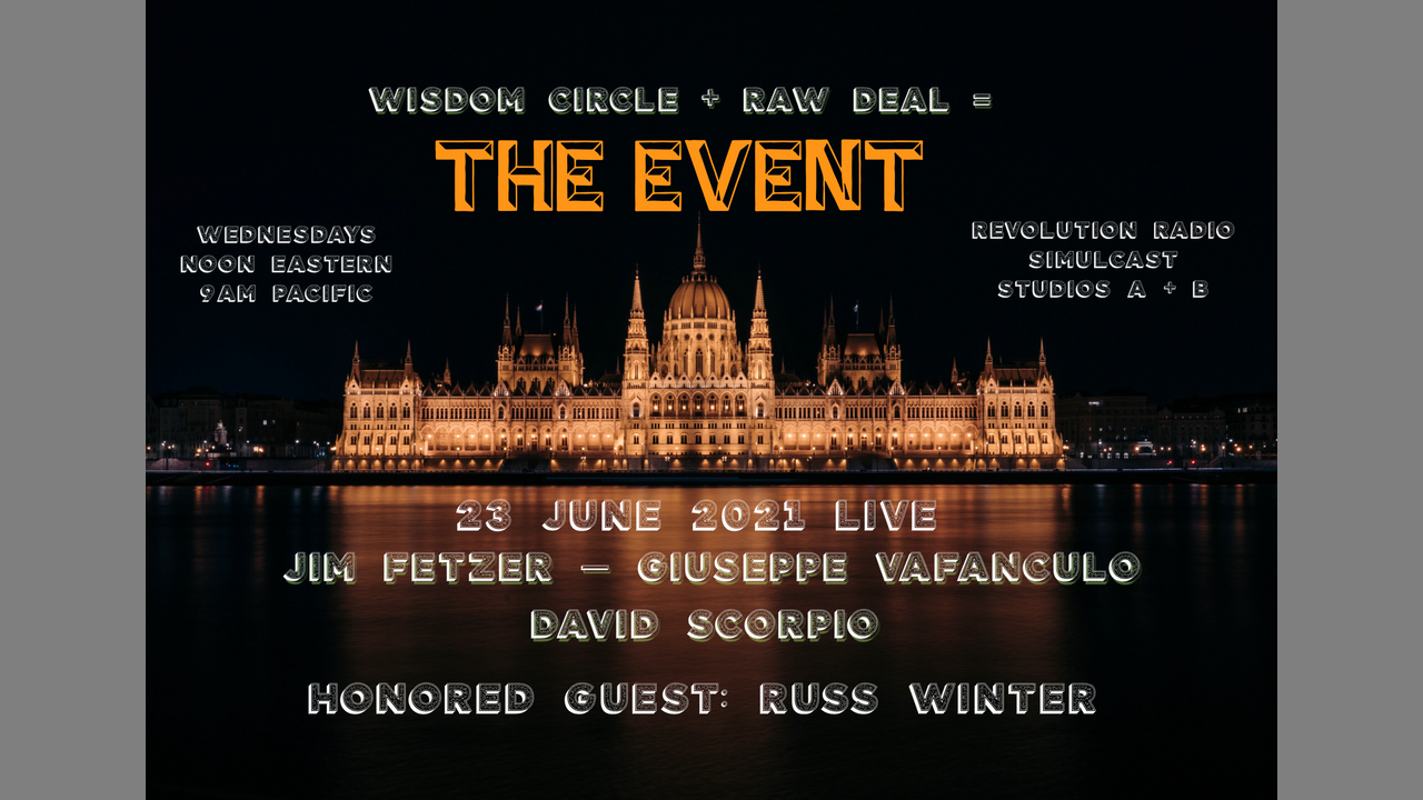 The Event (Wisdom Circle + Raw Deal) 23 June 21 - Guest: Russ Winter (www.winterwatch.net). Callers joined for hour 2.