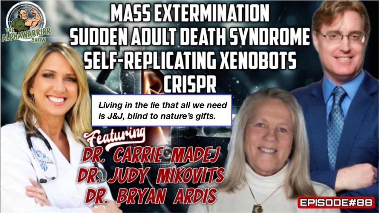 Alpha Warrior Show, #88 Mass Extermination & More with Dr. Carrie Madej, Dr. Judy Mikovits, Dr. Bryan Ardis: https://rumble.com/v1n0oce-mass-extermination-and-more-with-dr.-carrie-madej-dr.-judy-mikovits-and-dr..html