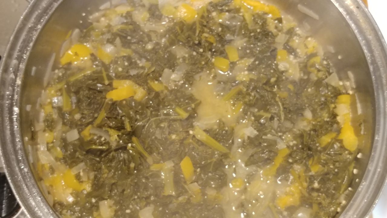 This is a simple recipe on how to make spicy kale greens with sauteed bell peppers, onions and garlic and seasoned with Grey Poupon mustard and honey. These greens are super healthy and delicious!