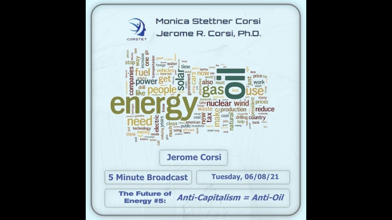 In today's 5 minute overview of the 30 minute broadcast, Dr. Corsi continues his series on the future of the energy industry and its effects on both individuals and nations.
