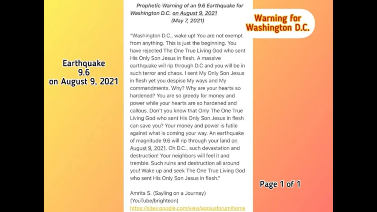 Prophetic Warning of an 9.6 Earthquake for Washington D.C. on August 9, 2021