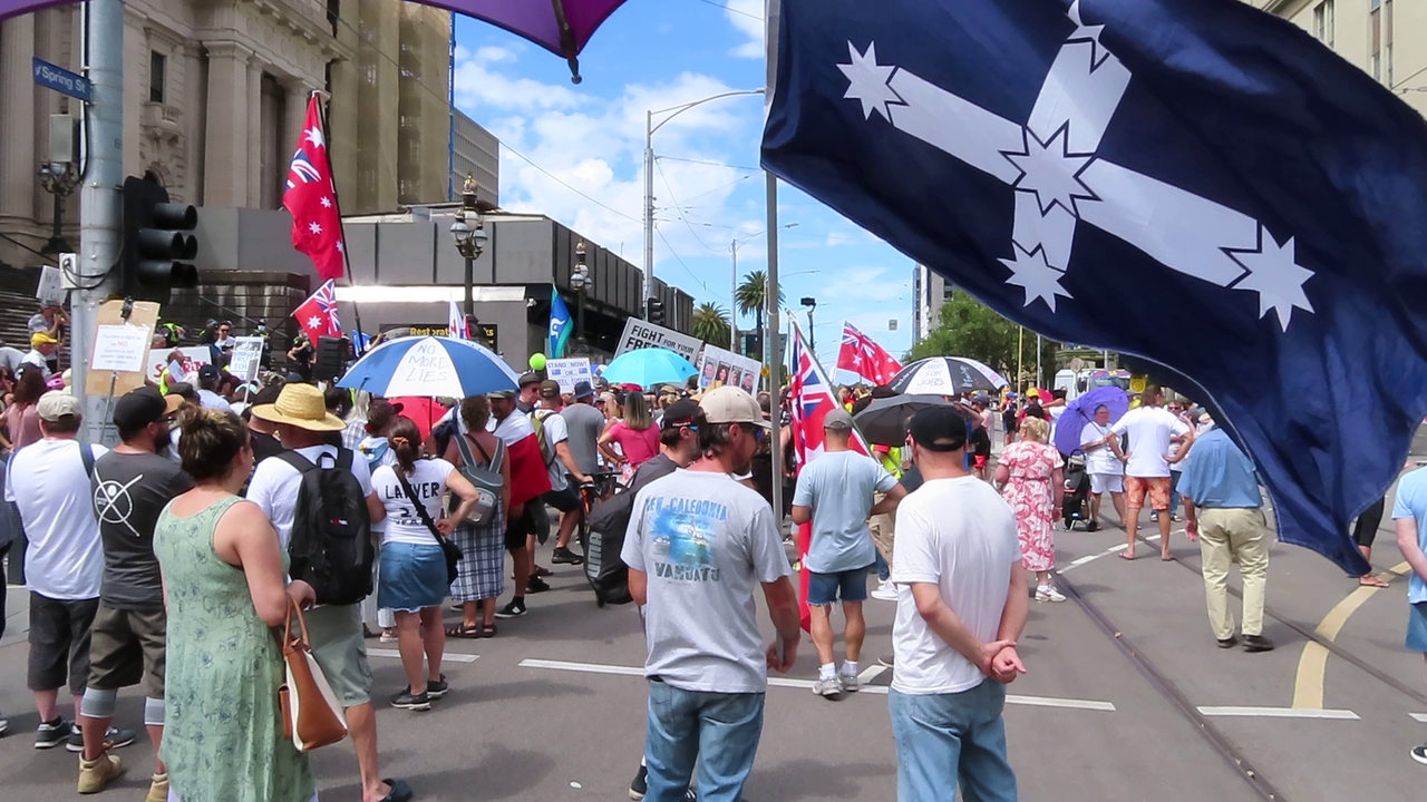 I haven't made the 'start' - only - of a march before, but for some reason there was a long wait before we began to leave the steps of Parliament House and I had recorded a lot of this patient waiting. This video shows the waiting, the buildup, and the police creating a managed space, all to music composed by my brother Phil Ackland, used with permission, a composition in 422.8 Hz titled "Nothing to See Here", which seems applicable because the mainstream media was nowhere to be seen. This event was for our eyes and cameras only.