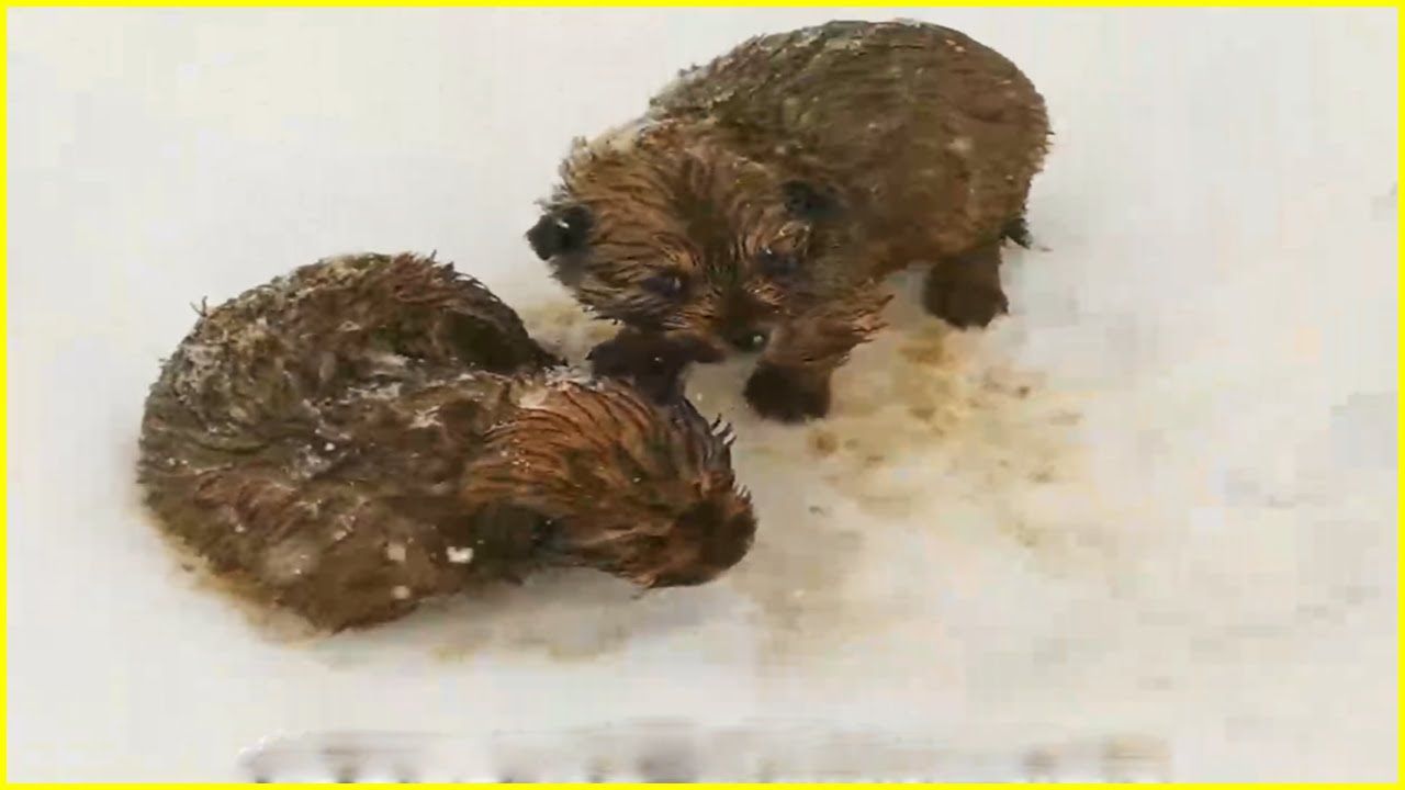 As the chilling wind whispered tales of the harsh weather the duo stumbled upon a heartbreaking scene – two small trembling puppies abandoned in the unforgiving snow. their fur matted and coated in a thick layer of icy flakes.