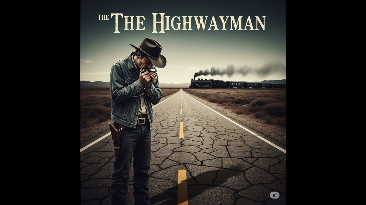 (Harmonica intro - slow, mournful, with a train whistle echo) (Verse 1) I've walked these roads since '49, a dust-blown, weary soul With a faded map and a tattered pack, and a story never told I've seen the sun rise red as blood on mountains cracked and old And felt the chill of an empty hand, as the last goodbyes were cold. (Chorus) I'm a highwayman, by God's own grace, or maybe by His curse A rolling stone with no fixed place, no richer and no worse Just a rumble in the gravel, a whisper in the wind A highwayman, until my journey's end. (Verse 2) From Tulsa town to Santa Fe, I've left my tracks behind Picked up a broken fiddle, and a girl of a different kind We shared a fire, a bottle, and a dream that wouldn't hold Then the dawn came up, the silence spoke, and her story, too, was told. (Chorus) I'm a highwayman, by God's own grace, or maybe by His curse A rolling stone with no fixed place, no richer and no worse Just a rumble in the gravel, a whisper in the wind A highwayman, until my journey's end. (Bridge) They say I robbed a bank or two, and maybe that's the truth But a hungry man in a hard-scrabble land, he ain't got much to lose I've seen the glint of silver, and the flash of a lawman's gun But a free man walks a lonely road, beneath a setting sun. (Verse 3) I heard a preacher on the radio, talkin' 'bout a judgment day Said a man's gotta reap what he has sown, and for his sins he'll pay Well, I've paid my dues in solitude, and the miles I've left behind And the only heaven I ever seek, is a peace I'll never find. (Chorus) I'm a highwayman, by God's own grace, or maybe by His curse A rolling stone with no fixed place, no richer and no worse Just a rumble in the gravel, a whisper in the wind A highwayman, until my journey's end. (Outro) (Harmonica fades out, leaving only the sound of a lone guitar string ringing, then silence) Yeah, a highwayman... and the road just keeps on callin'.