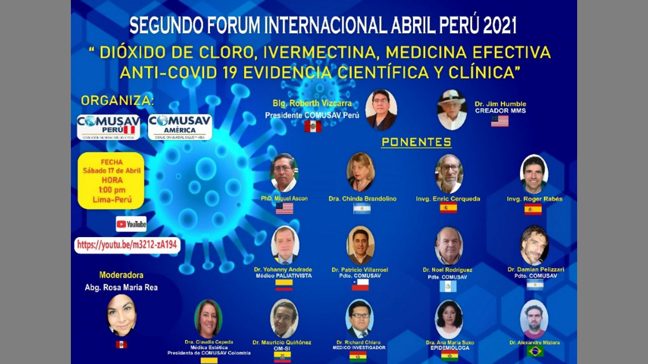 Segundo FORUM INTERNACIONAL 2021 DIÓXIDO DE CLORO INVERMECTINA MEDICINA EFECTIVA covid 17 abril primera parte