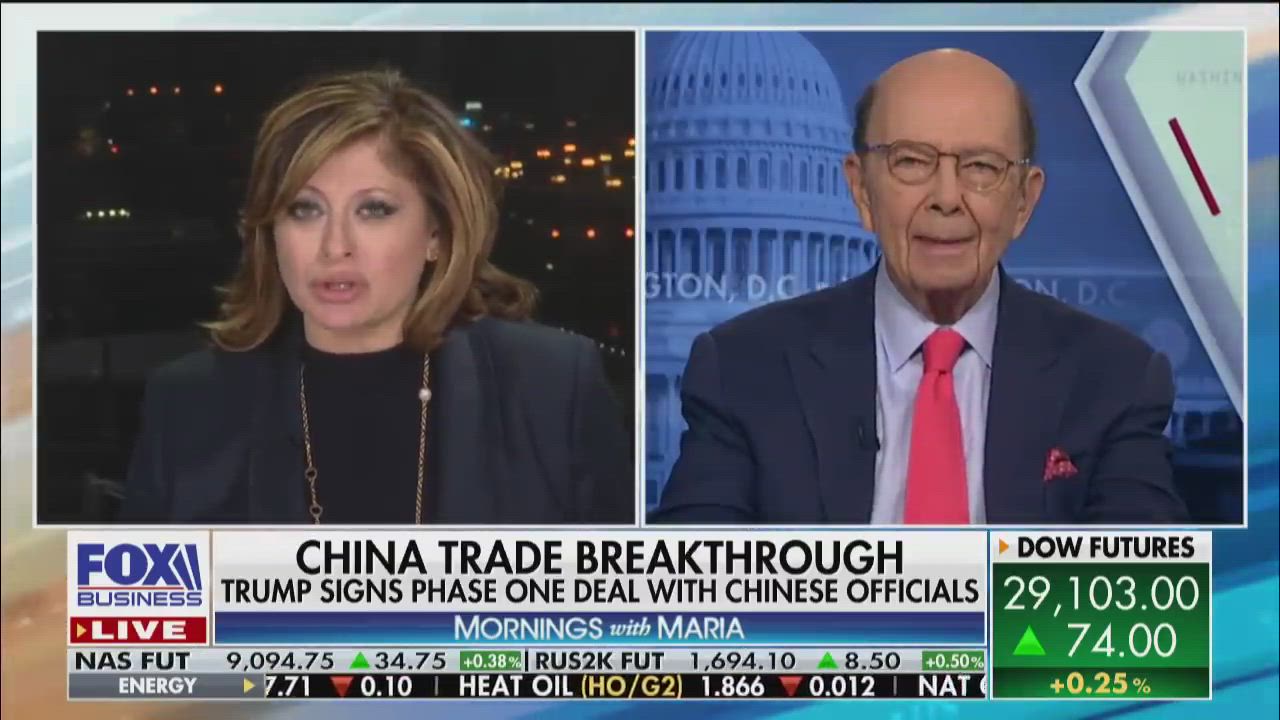 U.S. Commerce Secretary Wilbur Ross breaks down the enforcement mechanism included under the U.S.-China phase one trade agreement which he argues is unlike those of previous deals, he also commented on the benefits of USMCA and possible tax cuts.