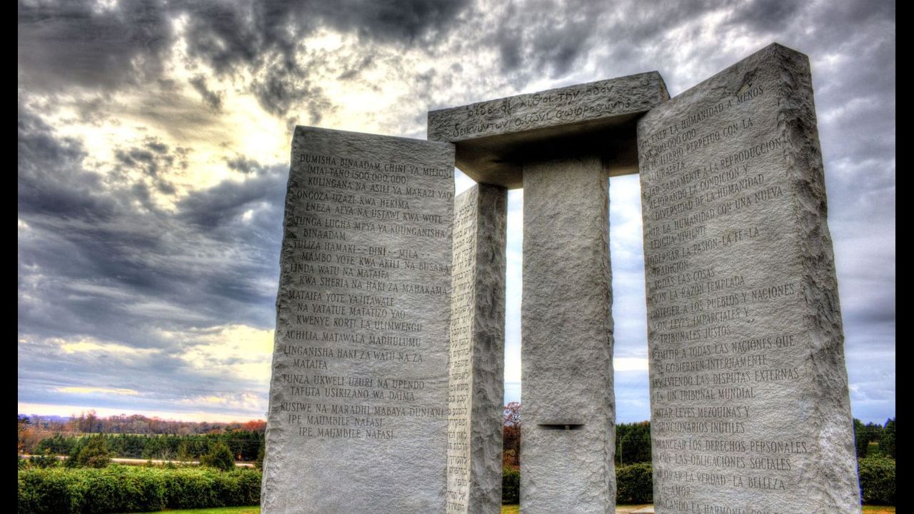 Alex Jones and crew stop by the Georgia Guidestones, the monument to the globalists’ depopulation agenda, while in Atlanta to Stop the Steal.