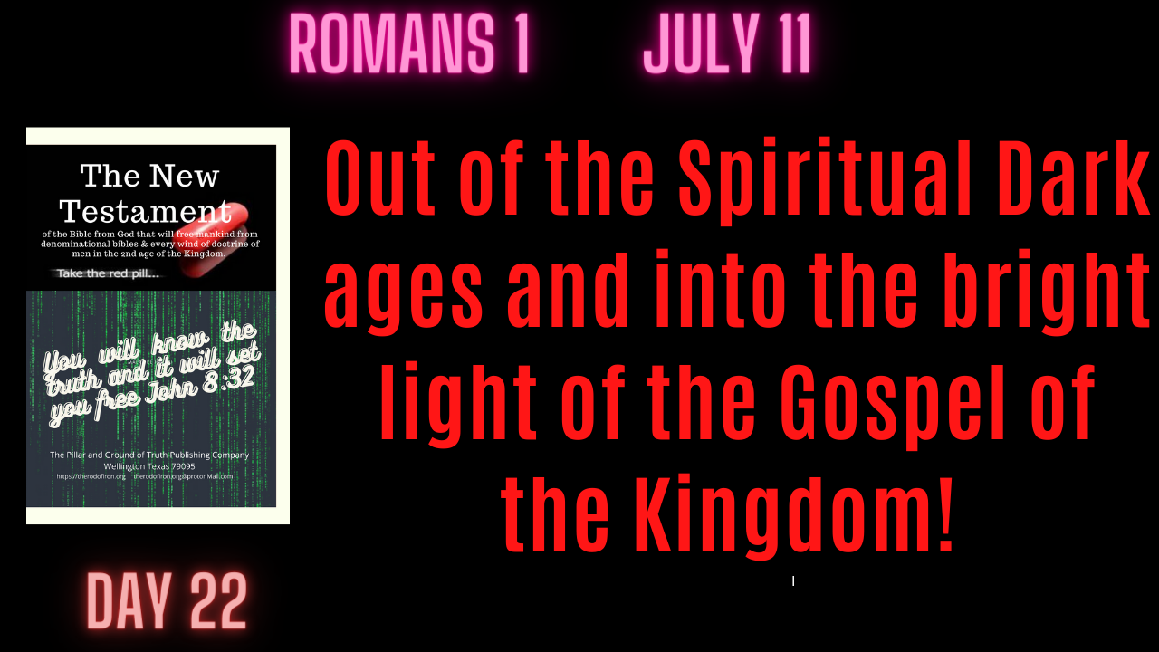 Romans 1. From the Spiritual Dark Ages to the glorious light of the gospel of the Kingdom of God!