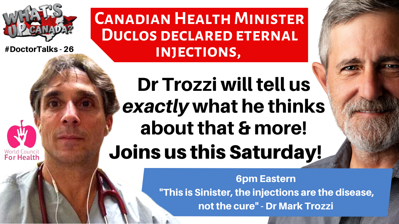 Dr Mark Trozzi is no stranger to our community here, or the world medical community. As one of the lead faces of the World Council for Health he is not only an amazing Canadian, he also on the global tip of the organized opposition of the totalitarianism. Not just the Canadian government but dozens of others who are also operating within nefarious medical agendas. The dangers are most clearly catastrophic for humanity, if they would only look it would seem. It’s hard to imagine they haven’t, if they do look then they are easily distinguishable from those who participate and endorse the experiments.