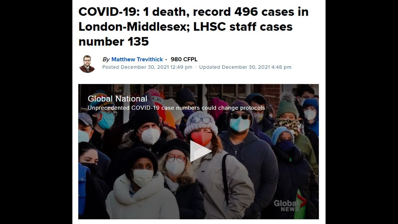 1 death, record 496 cases in London-Middlesex; LHSC staff cases number 135