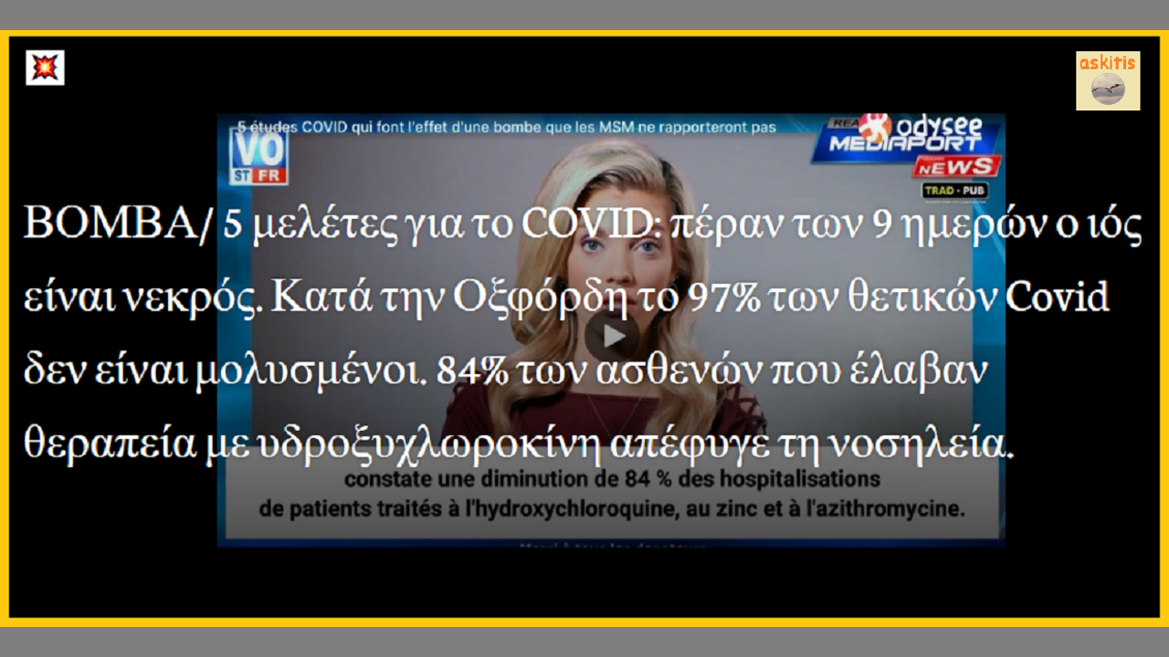 ΒΟΜΒΑ 💥 5 μελέτες για το COVID: πέραν των 9 ημερών ο ιός είναι νεκρός. Tο 97% των θετικών Covid δεν είναι μολυσμένοι. 84% των ασθενών που έλαβαν θεραπεία με υδροξυχλωροκίνη απέφυγε τη νοσηλεία...