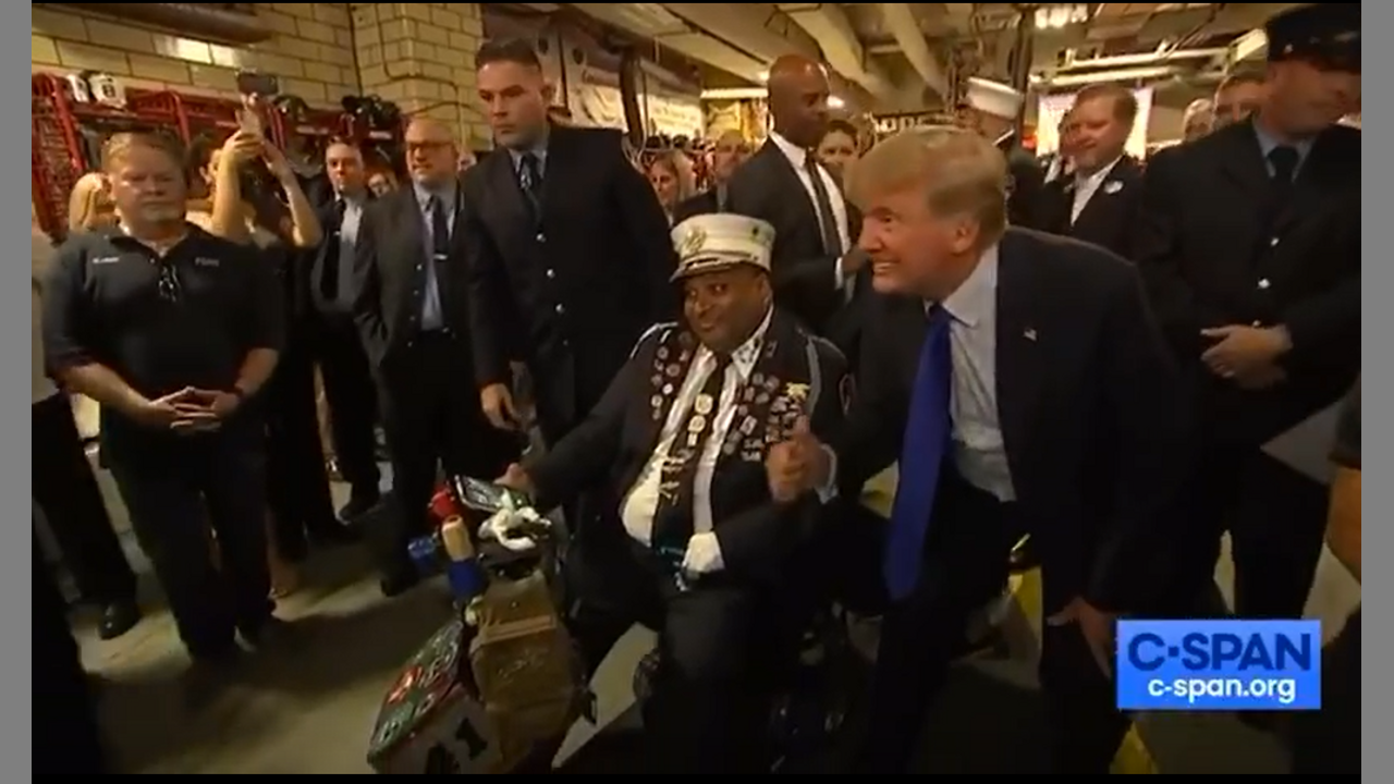 President Trump speaks with NY finest and questions Biden's love for the country.