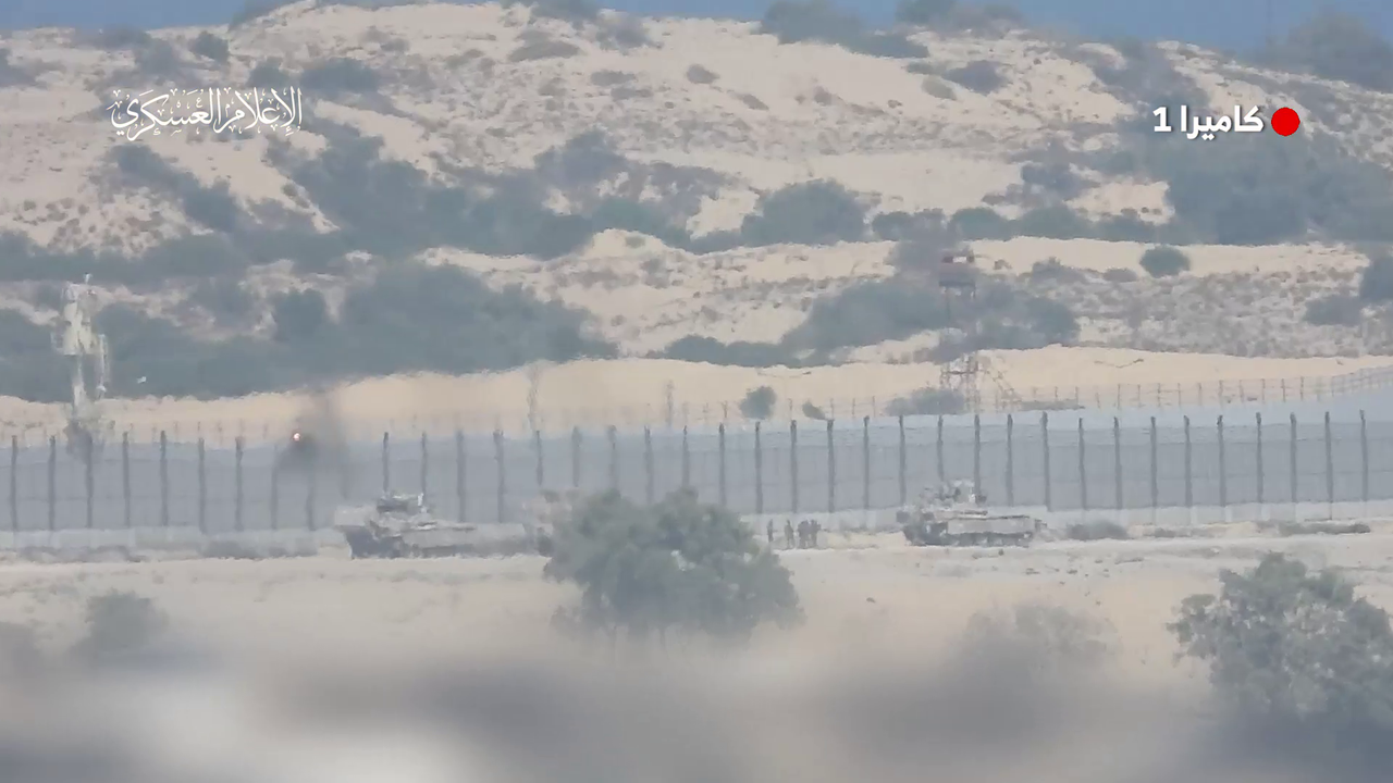 Al-Qassam (Hamas) published a video showing the successful targeting of an OFC military engineering vehicle with a “Red Arrow” guided missile (ATGM).