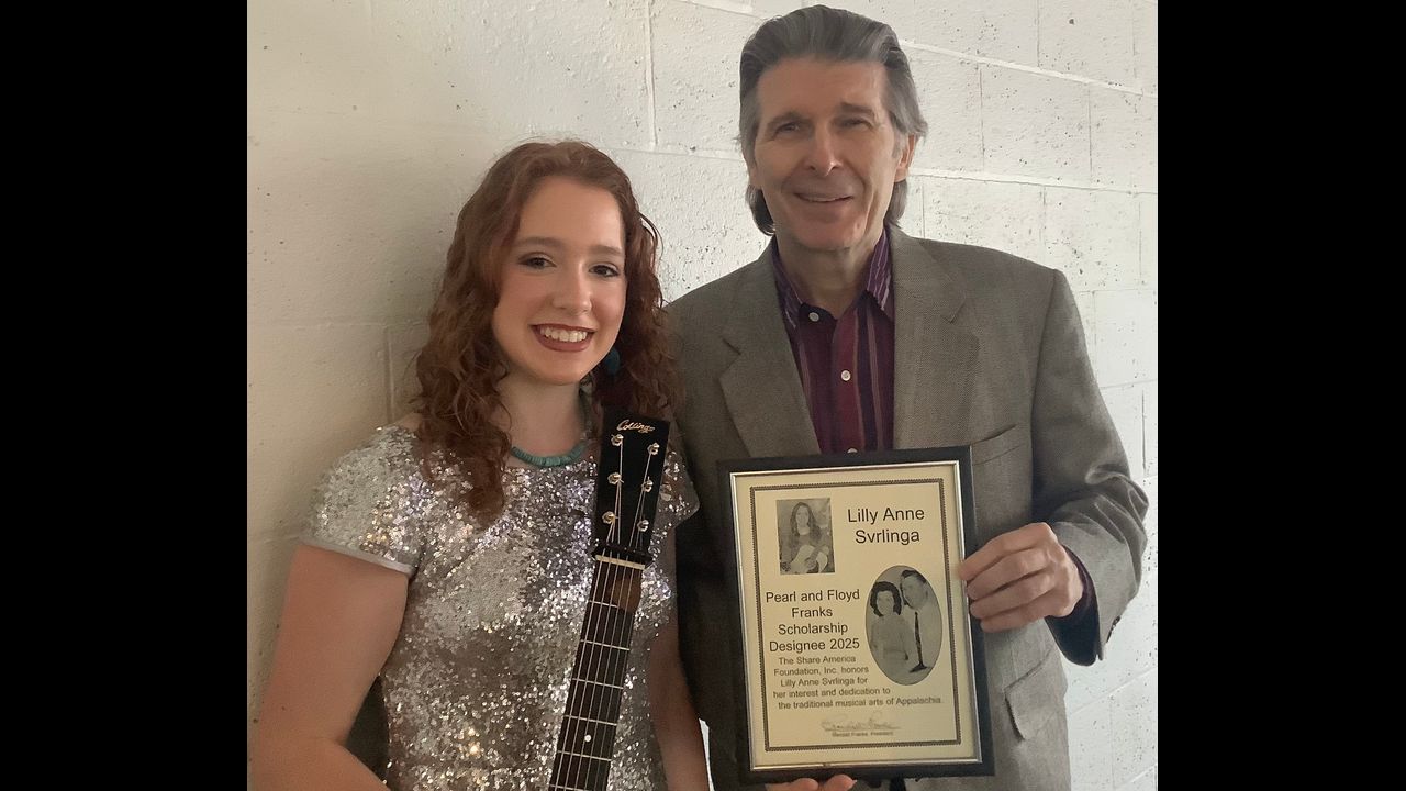 The Share America Foundation is proud to announce our 2025 Pearl and Floyd Franks Scholarship Designee Lilly Anne Svrlinga of South Carolina awarded today by President Randall Franks at the Boxcar Pinion Memorial Bluegrass Festival