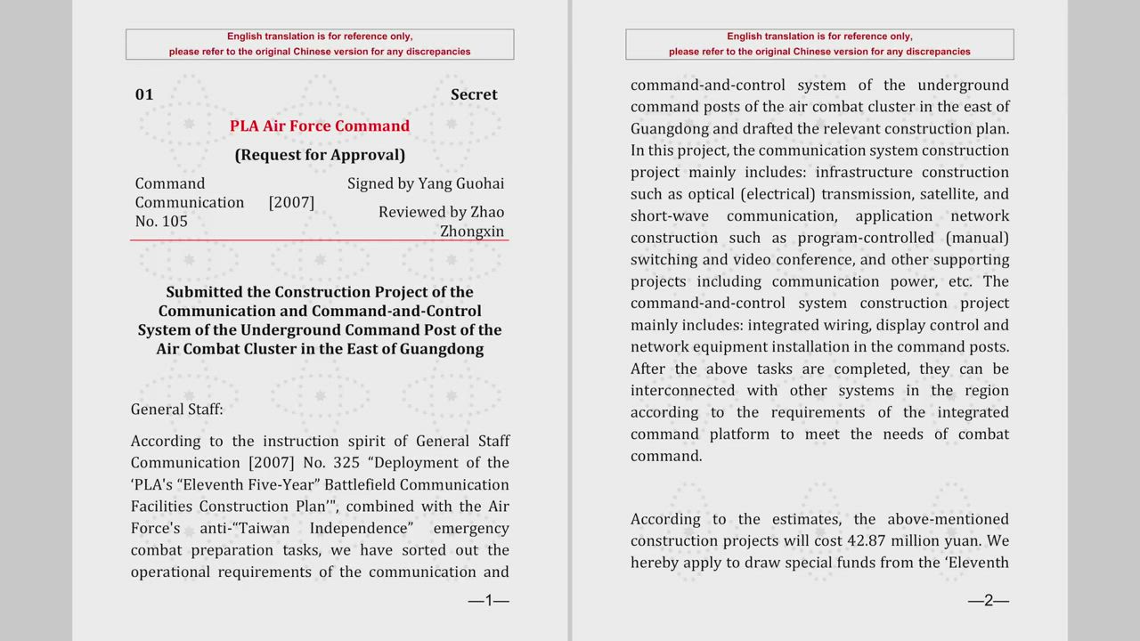 Submitted the Construction Project of the Communication and Command-and-Control System of the Underground Command Post of the Air Combat Cluster in the East of Guangdong