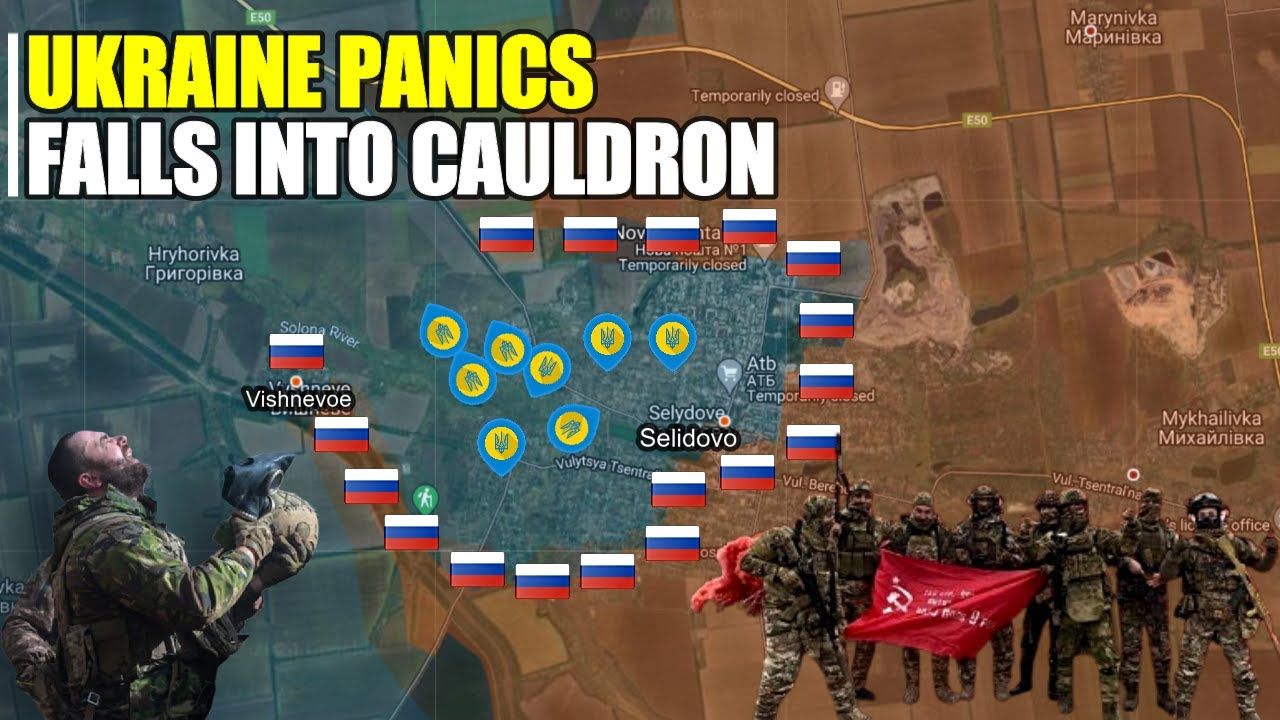 Drone footage shows that the 433rd Motorized Rifle Regiment, named after the Don Cossacks of the 27th Guards Motorized Rifle Division, has raised the Russian flag on the roof of a high-rise building in the center of Selidovo. Meanwhile, the situation is critical for the rest of the Armed Forces of Ukraine, trapped in the Selidovo cauldron. Russian forces deliberately surrounded the city to force Zelensky’s troops to flee before launching a final assault without significant damage to the city’s fabric. Videos of Ukrainian soldiers fleeing began to emerge, their MRAP driving into the streets controlled by the Russian assault troops, and being attacked with small arms. “No Kornet ATGM,” they said in Russian during the trip, and had to be censored. Many Ukrainian soldiers did not manage to escape the Selidovo fortifications, now only having a 2-kilometer strip of land, which they could still use to run to the wheat fields heading west. They apparently fled during the night, but not everyone was able to leave, possibly being attacked and captured by Russian troops.