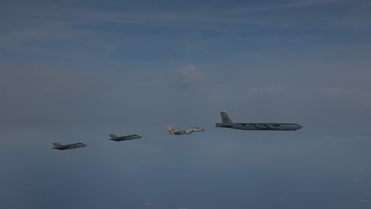 In an attempt to intimidate Iran the Zionist occupation that calls itself "Israel" and its large vassal the USA are conducted air force exercises with F15s F35s and the 70 year B-52 heavy bomber 🇮🇱🇺🇸⚡️🇮🇷
