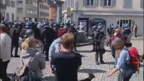 The small red books people are raising are the Swiss constitution.