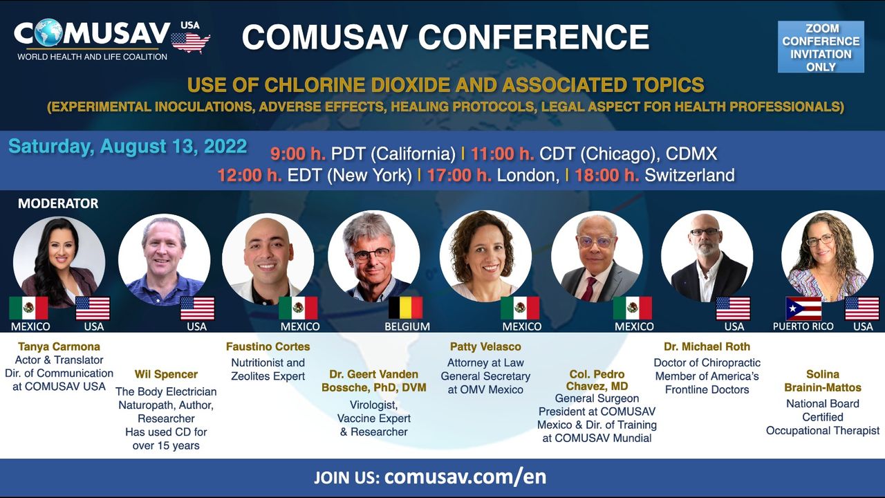 02:41:23 Invitation to attend COMUSAV Mundial's 2nd International 2-Day Conference on Oxidative Therapies & Regenerative Medicine Oct. 14 & 15-2022 in Guadalajara, Mexico. For more information visit: www.comusav.com/en/congreso