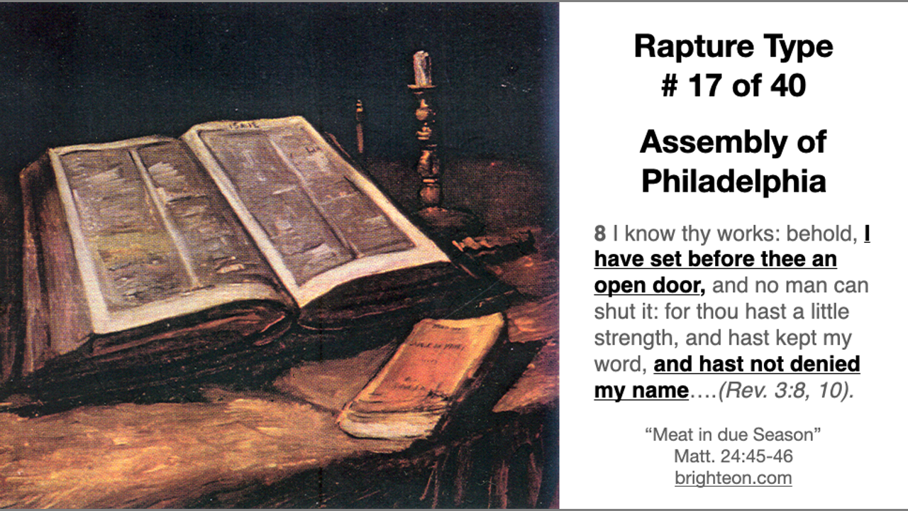 The Assembly of Philadelphia is an important type of the rapture.