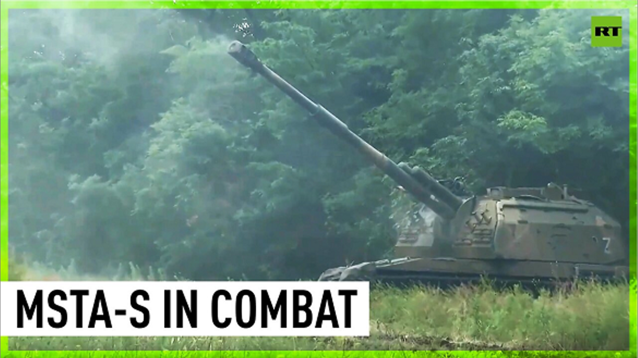 The Russian Defense Ministry has shared footage of the combat work of MSTA-S 152mm self-propelled artillery crews striking military targets in the Zaporozhye direction of the battle zone.